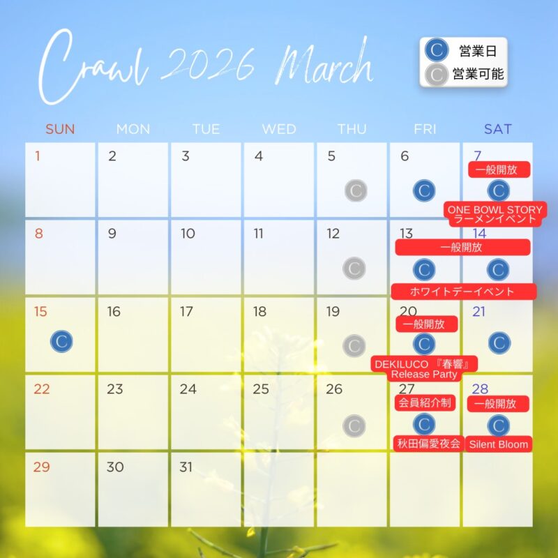 Crawl 2026年3月の営業スケジュールです。